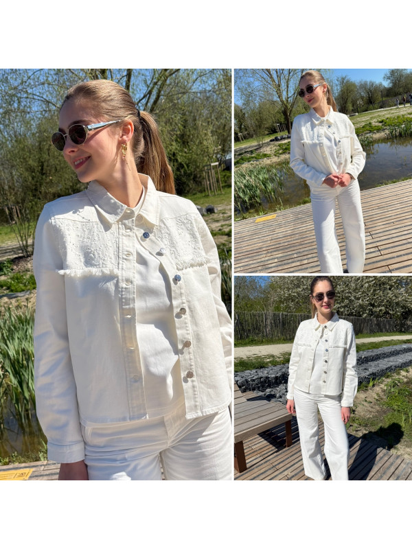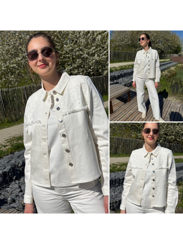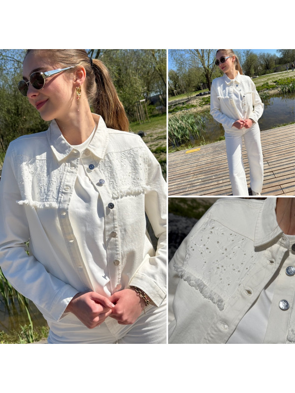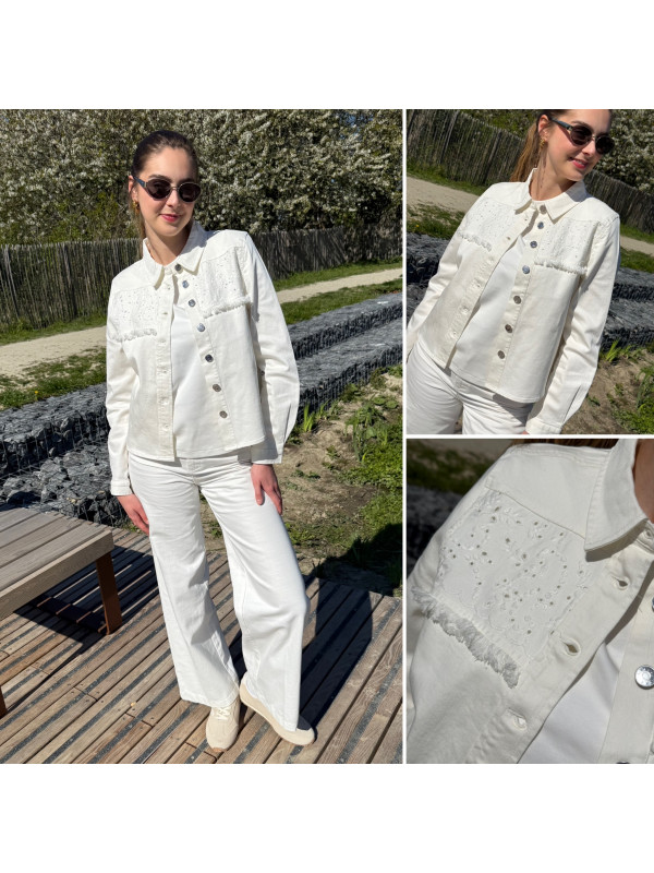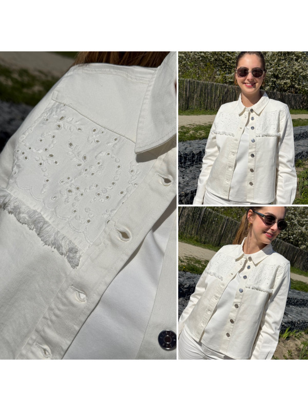 Veste en jean blanche avec broderies sur le devant (du 36 au 46)