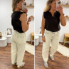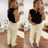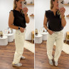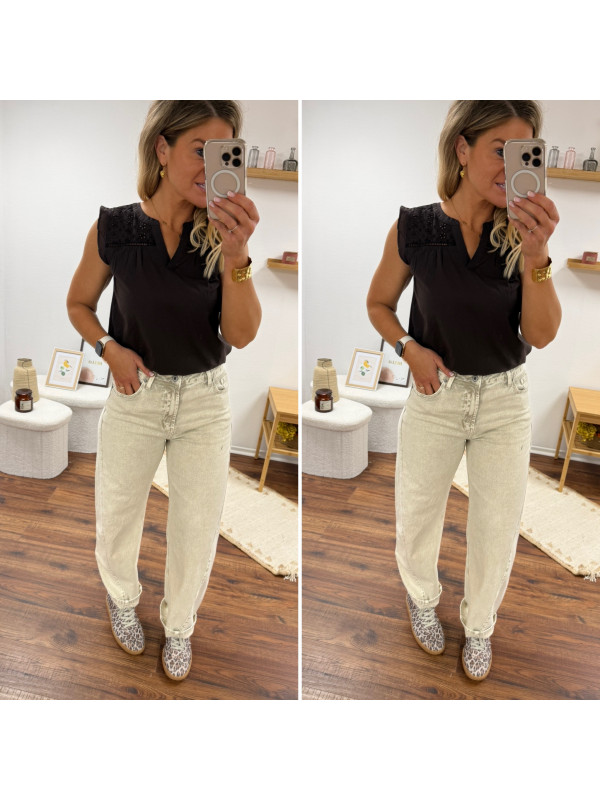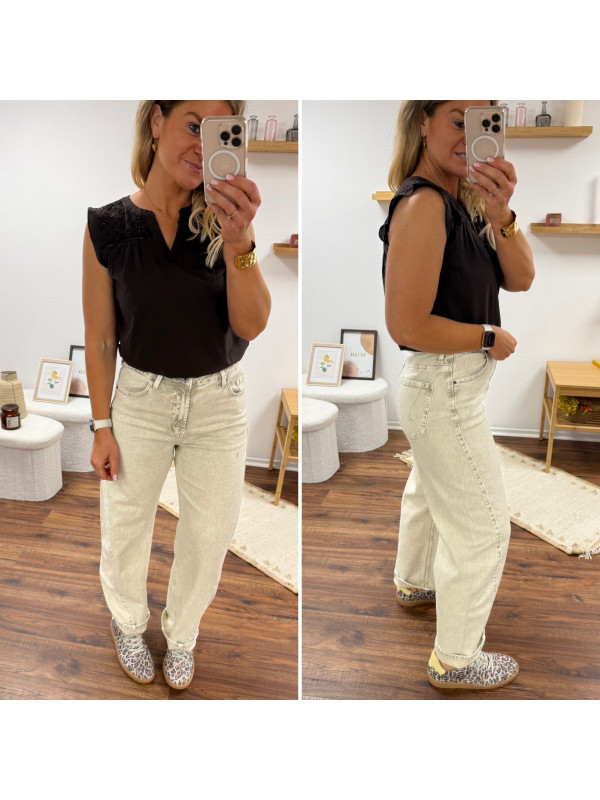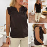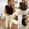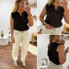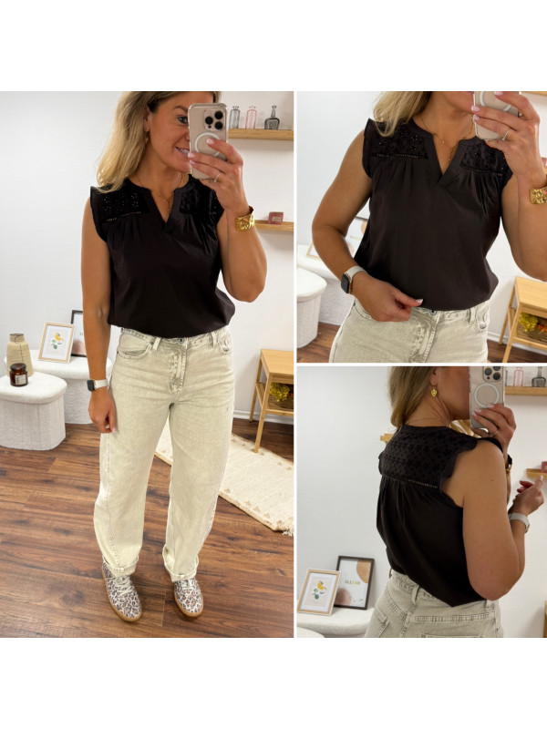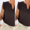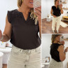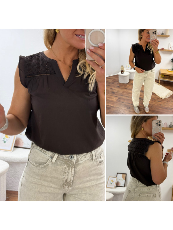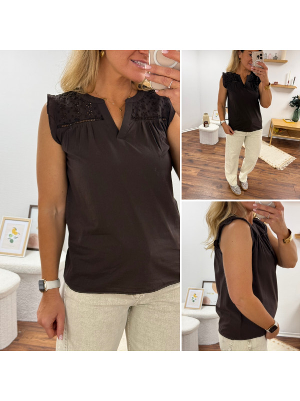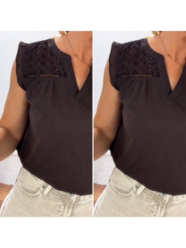 Top chocolat col V avec broderies ajourées sur les épaules (du 36 au 46)