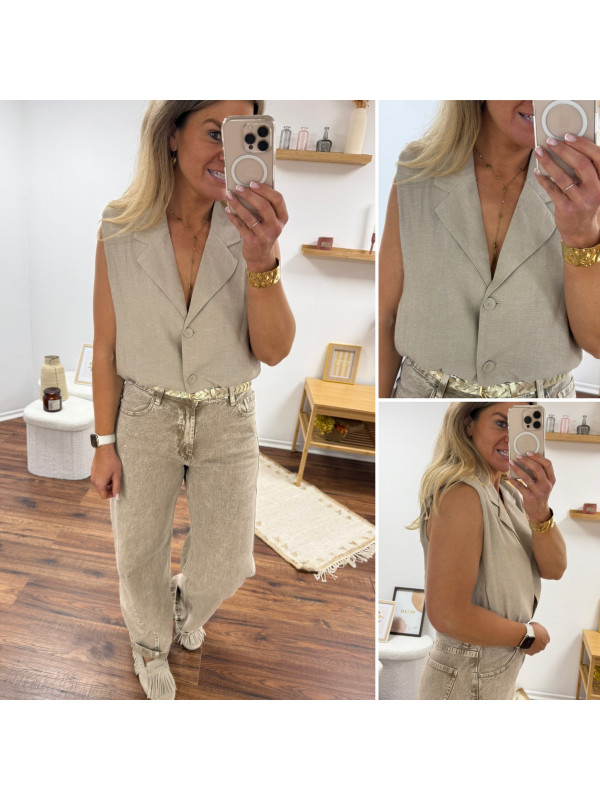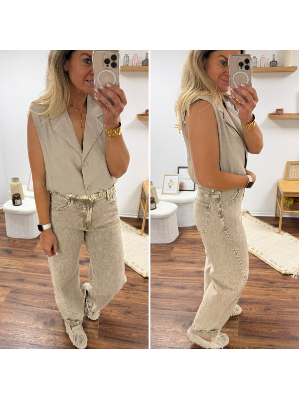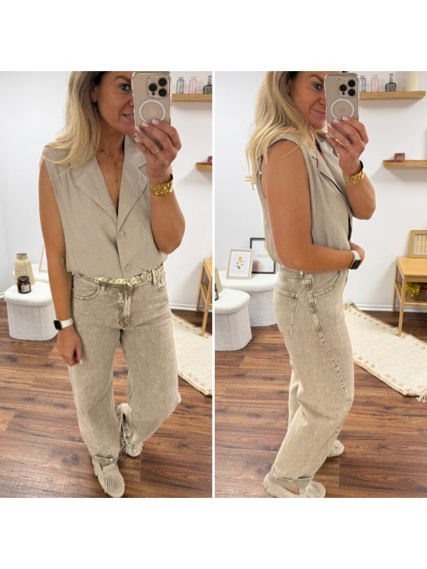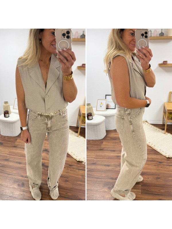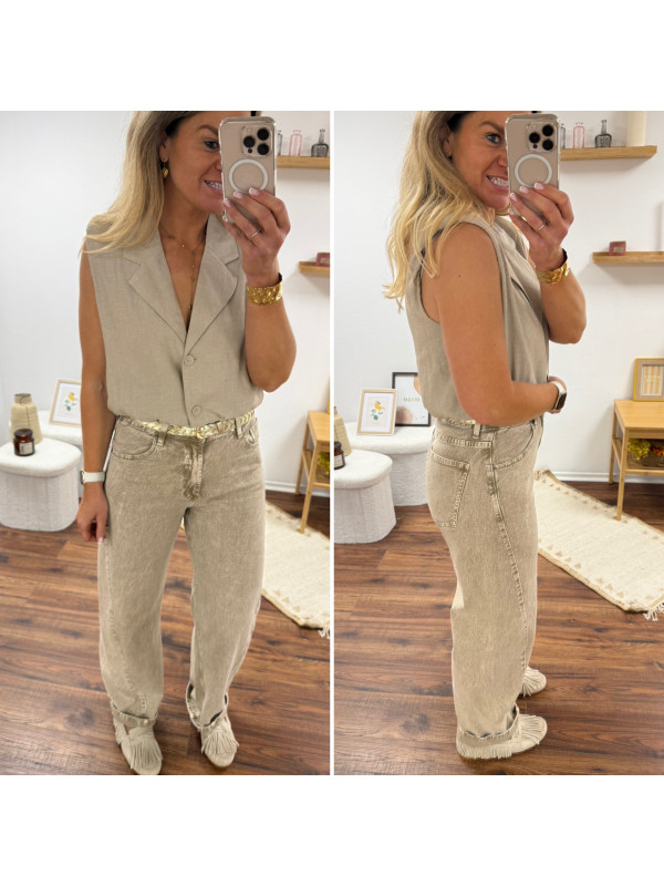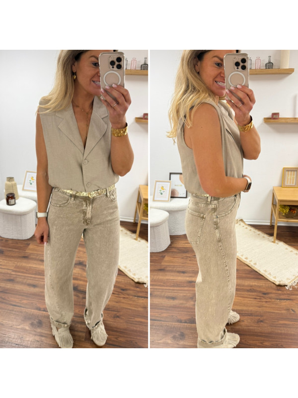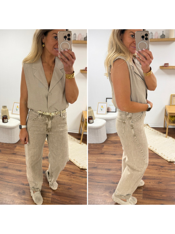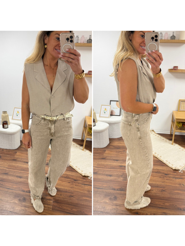 Jean ballon camel délavé avec couture sur le devant Disponible...