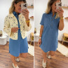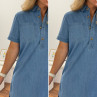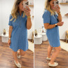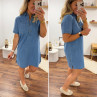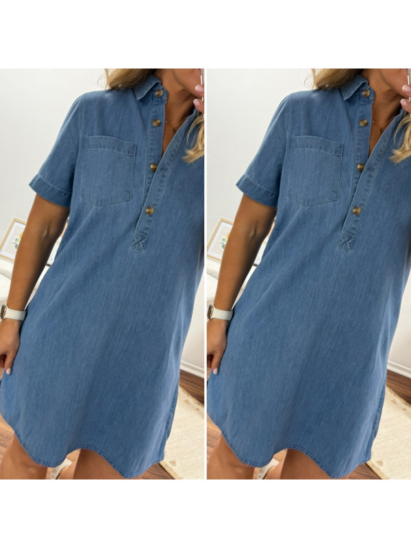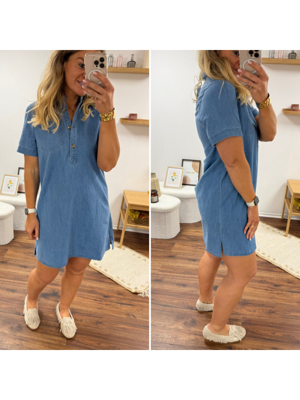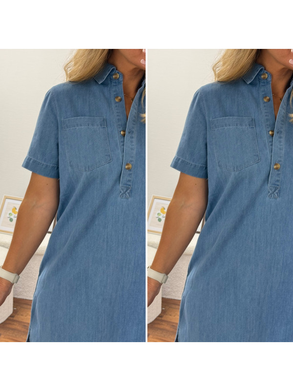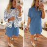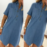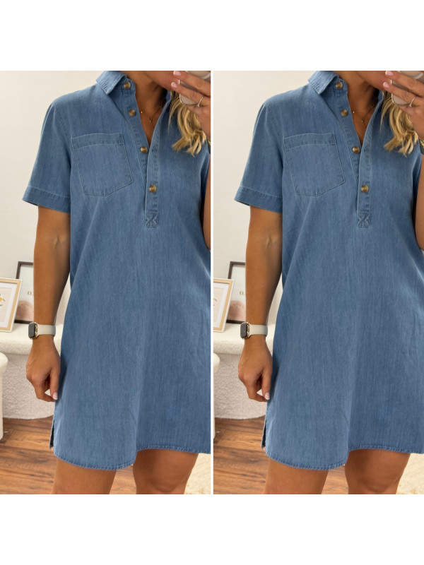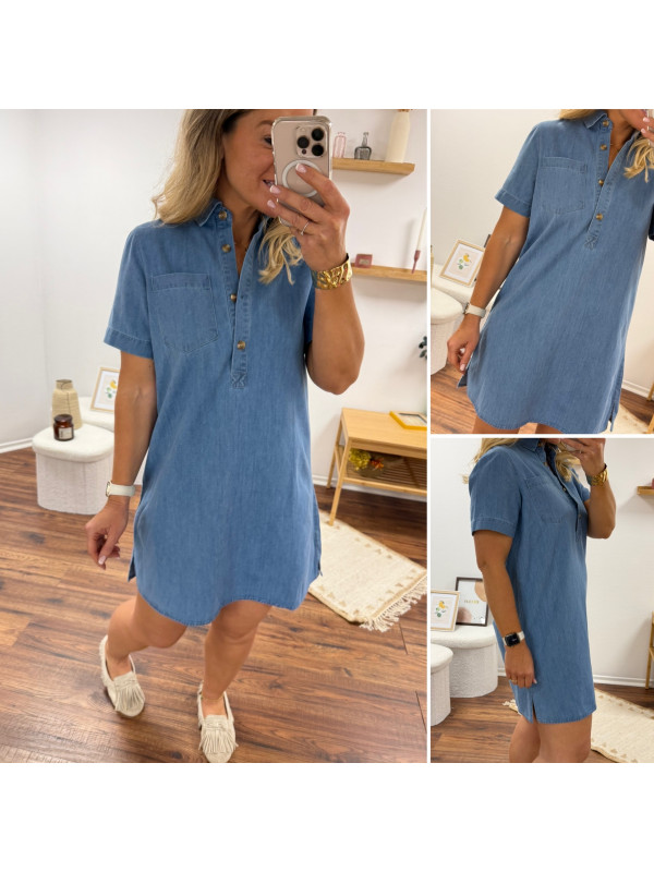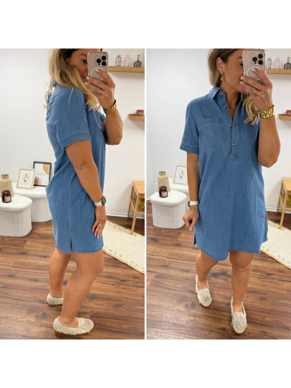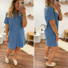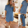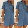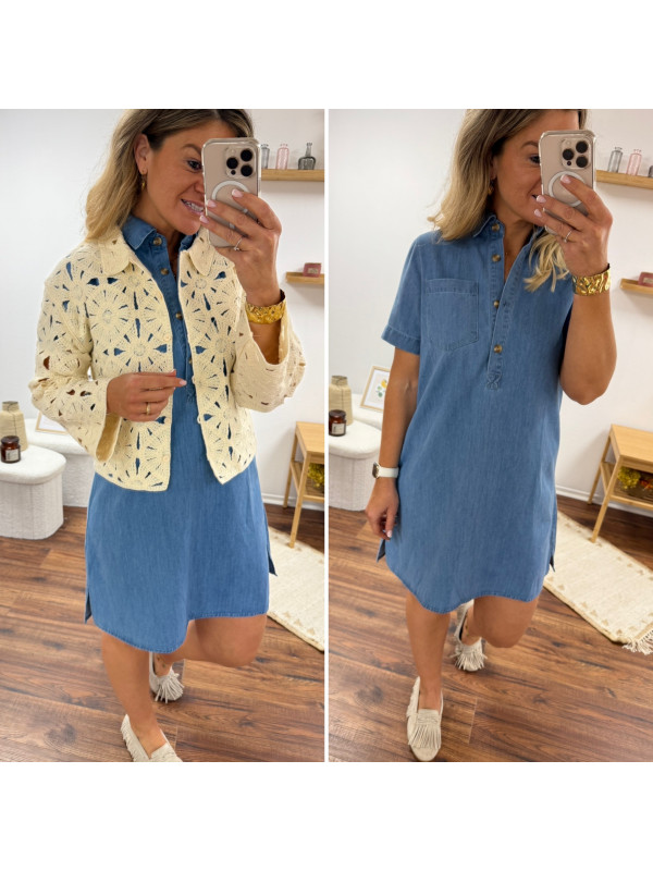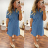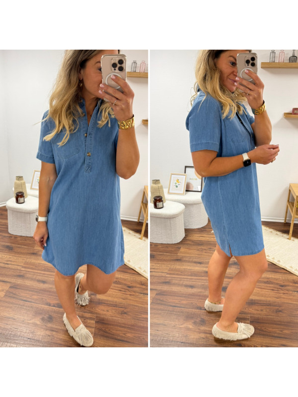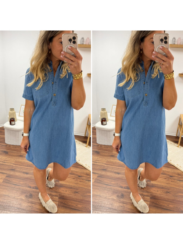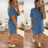 Robe courte en jean bleu boutonnée avec col chemise