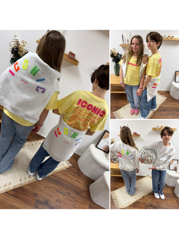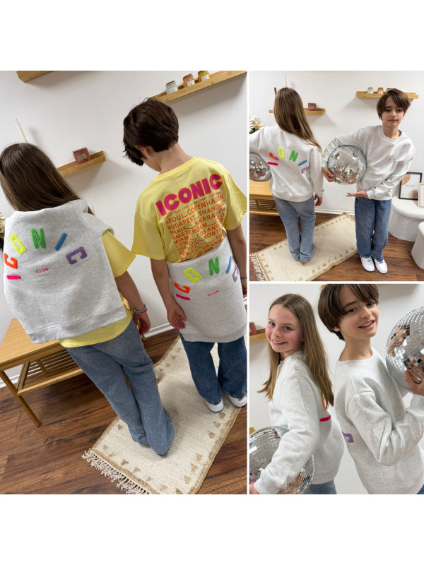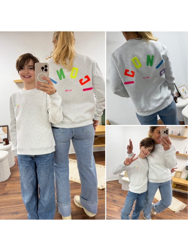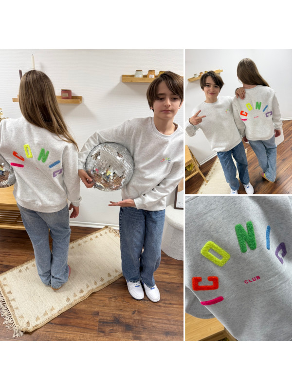 Sweat adulte gris iconic avec écritures multicolore en relief (dispo uniquement en boutique - sous réserve du stock disponible)