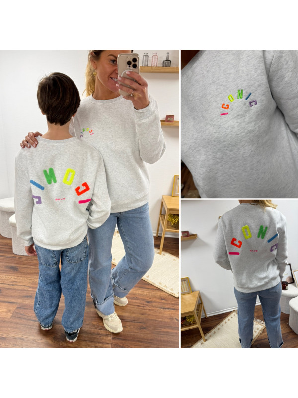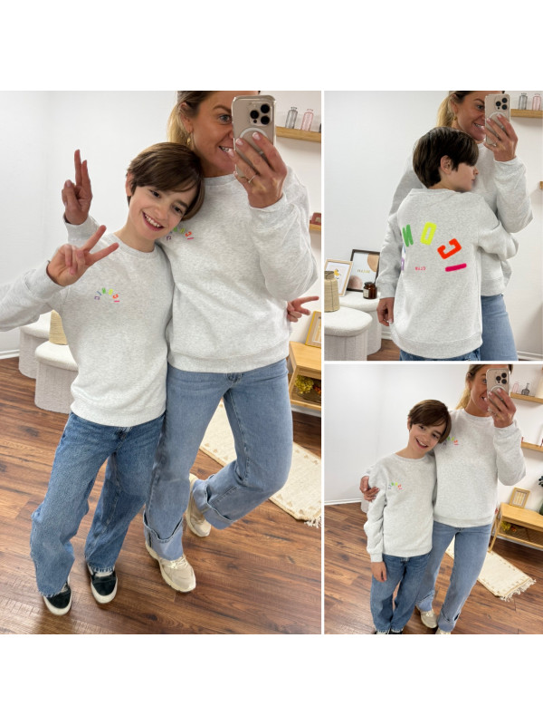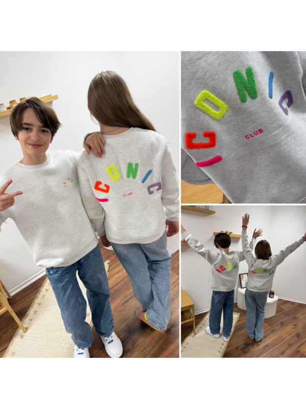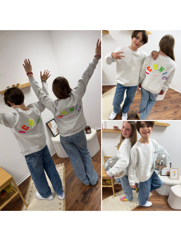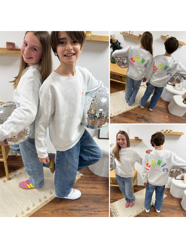Sweat gris version kids "iconic" avec écritures multicolores en relief (dispo uniquement en boutique)