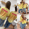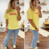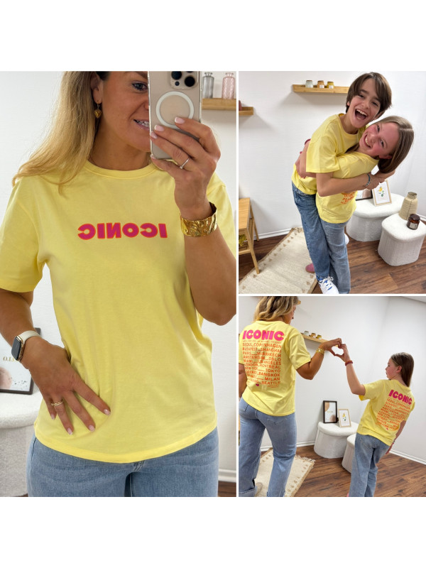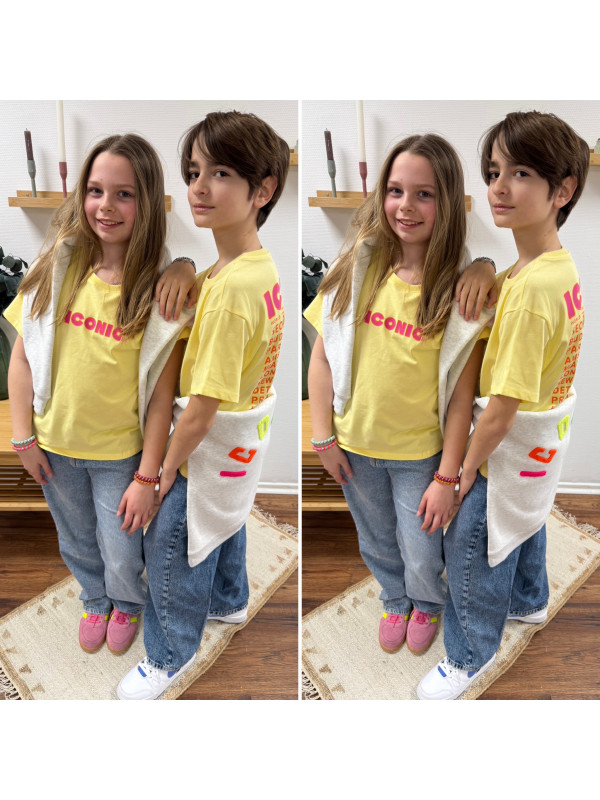 Tee shirt kids jaune "iconic" avec écritures roses et oranges fluos (dispo uniquement en boutique)