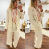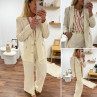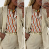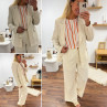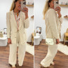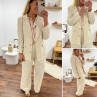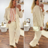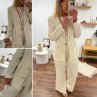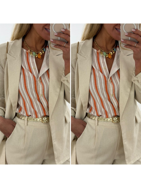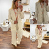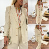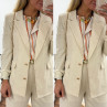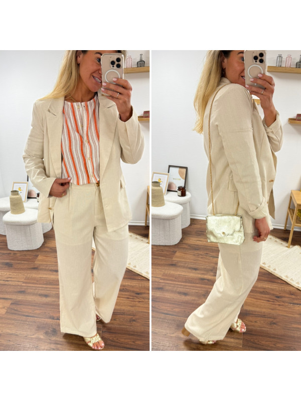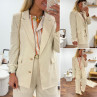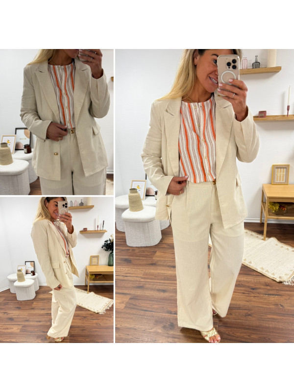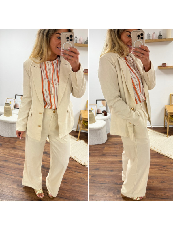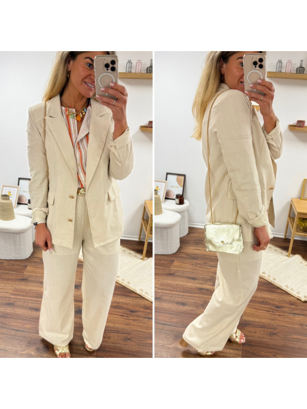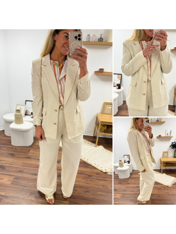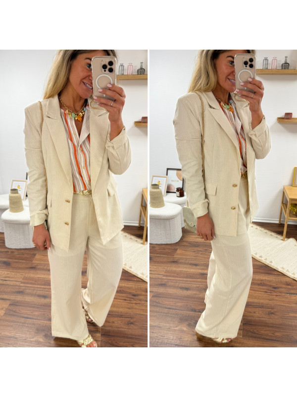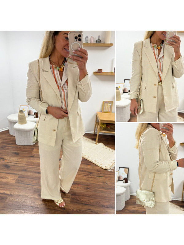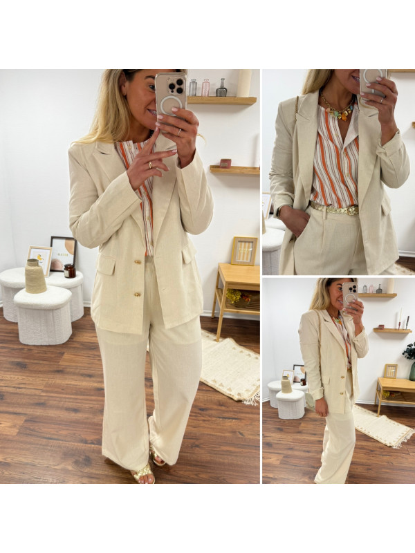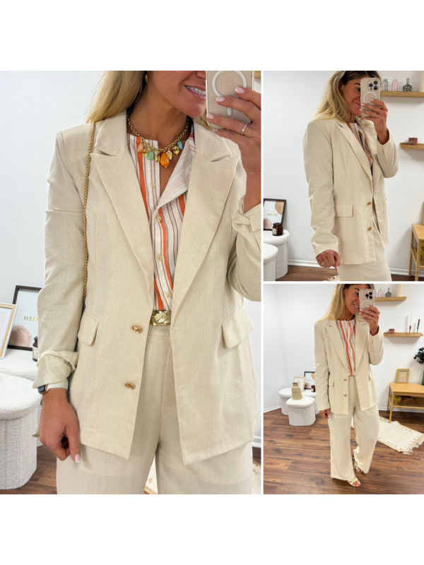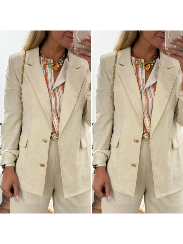 Veste de blazer beige en lin avec boutons dorés et fausses poches