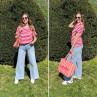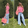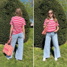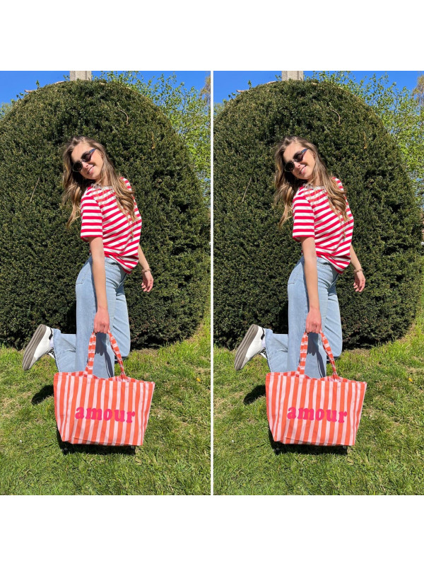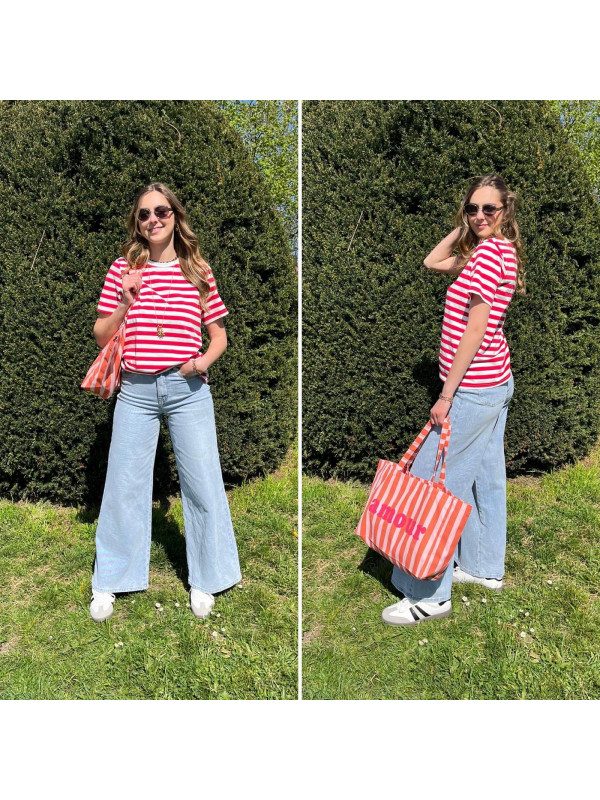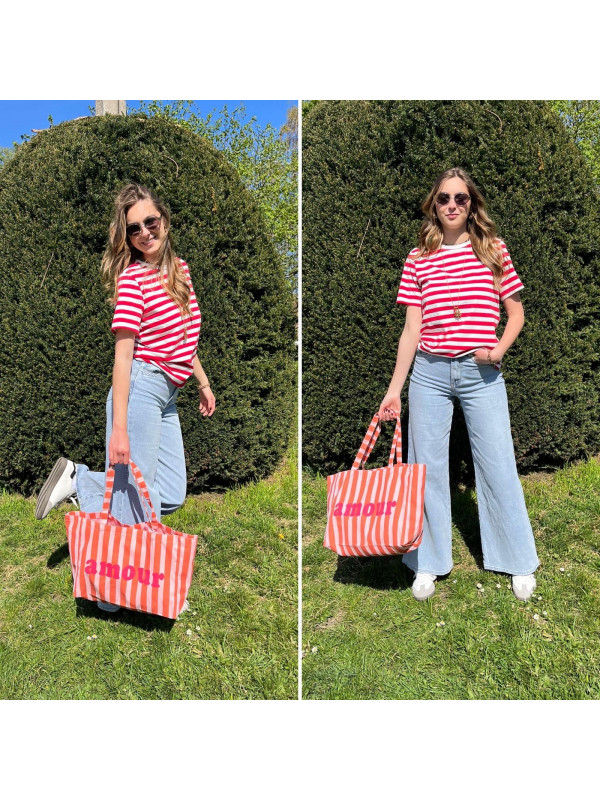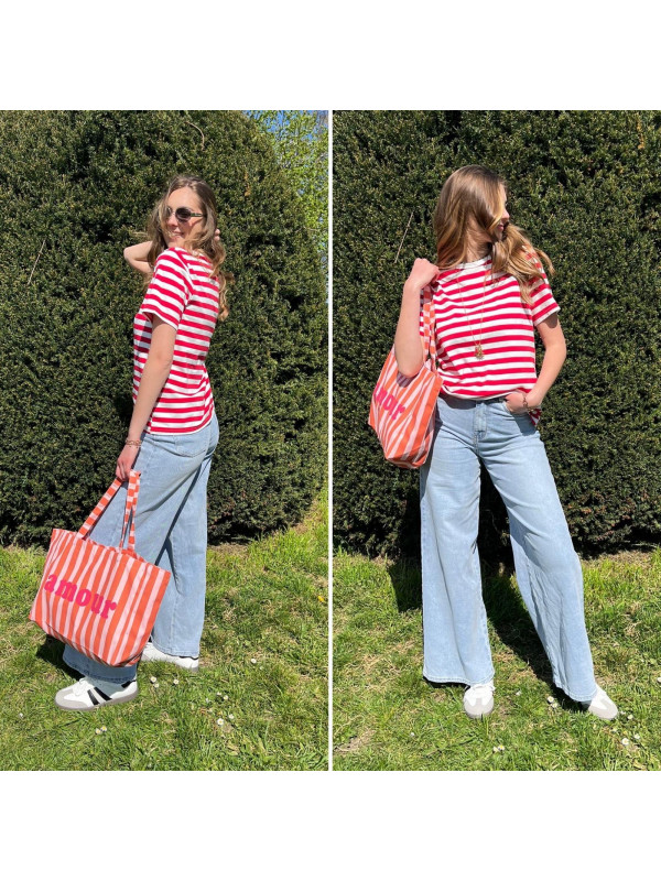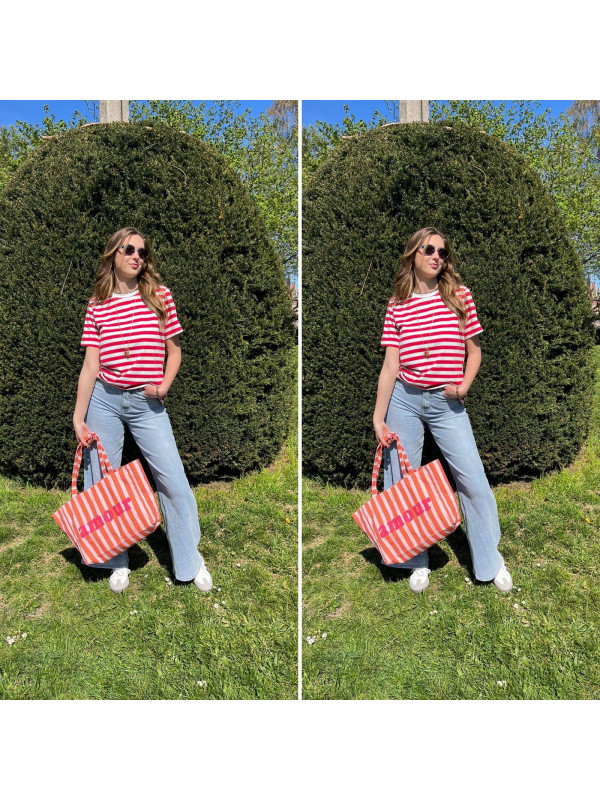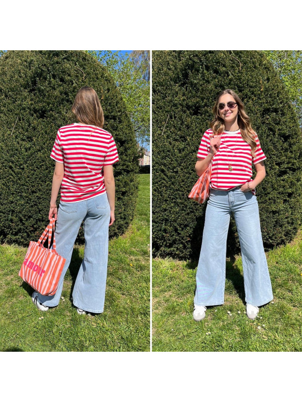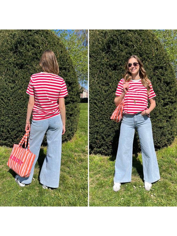 Tee-shirt manches courtes rayé façon marinière rouge et blanc