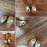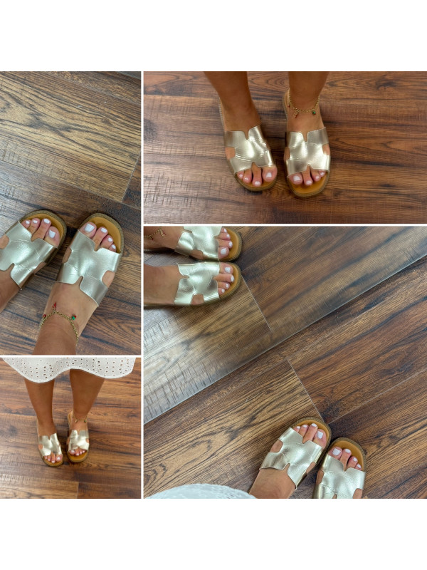 Nu pieds dorés avec découpes en forme de "H" sur le pied