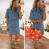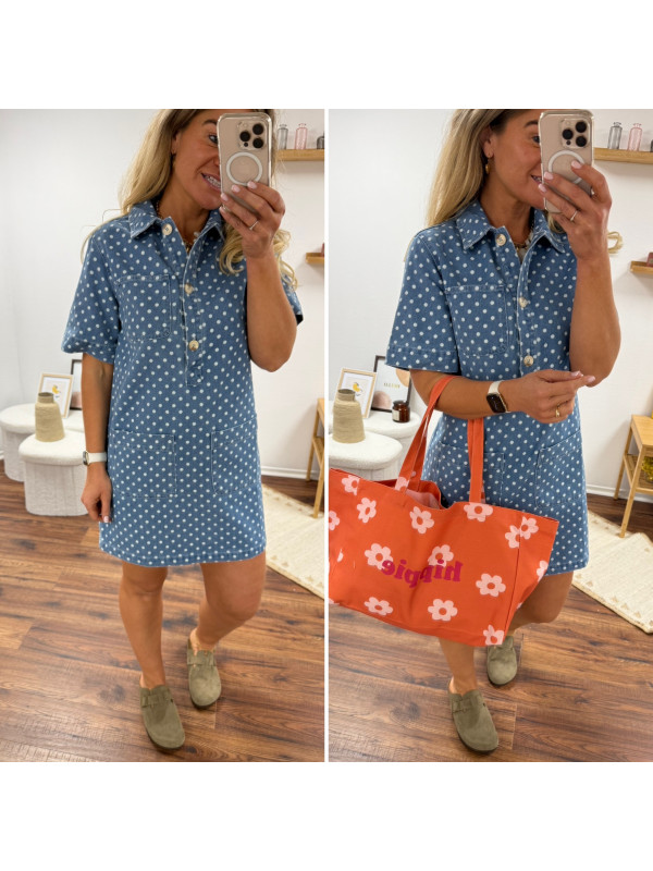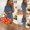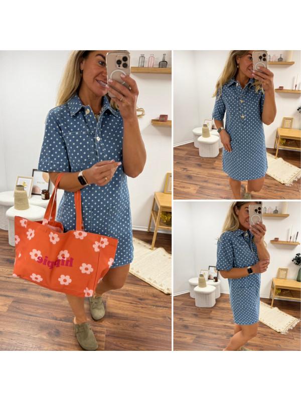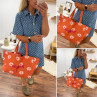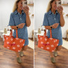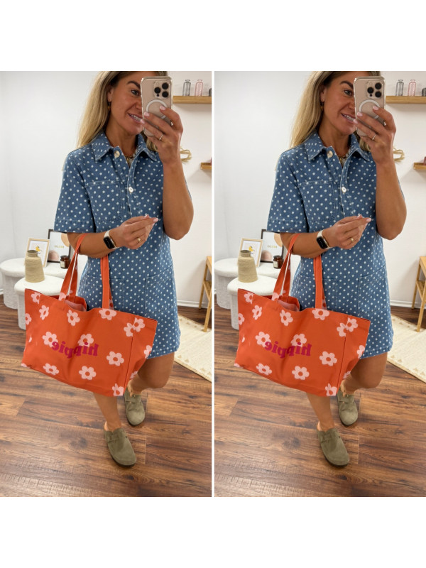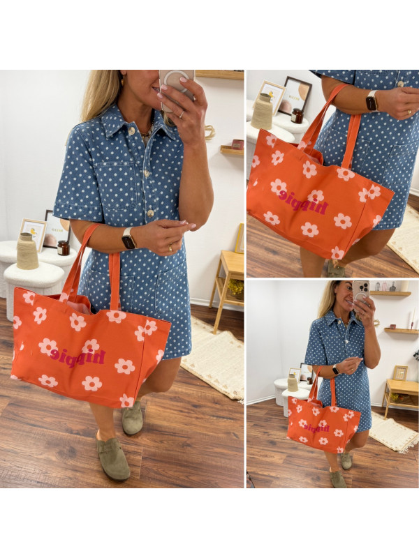 Sac en tissu épais orange avec fleurs et logo "hippie"