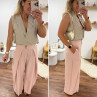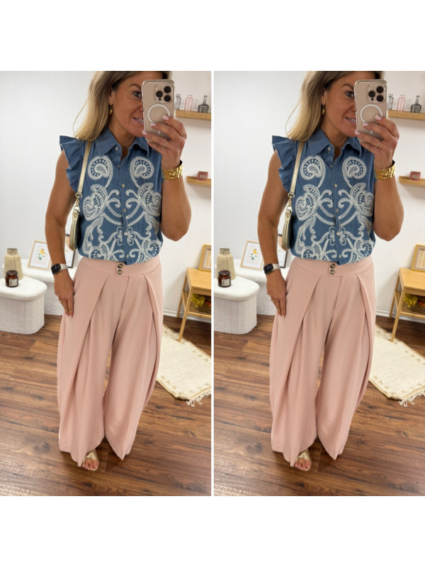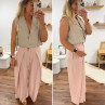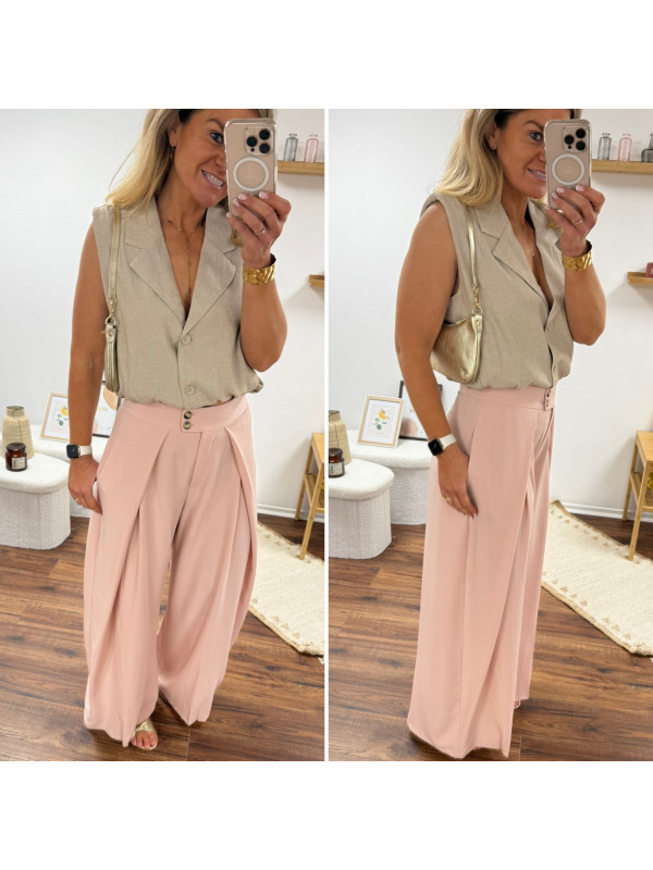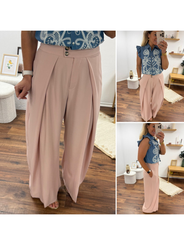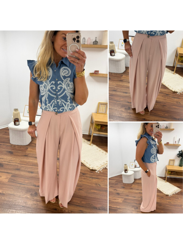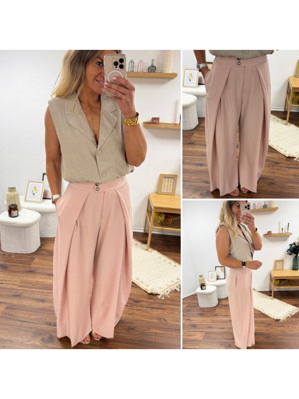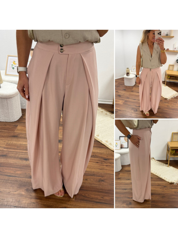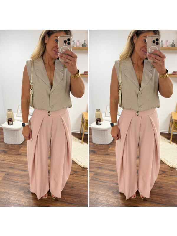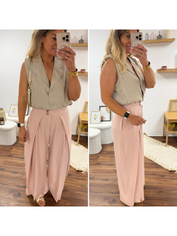 Pantalon vieux rose à pinces fluide avec pli sur la jambe