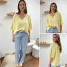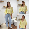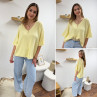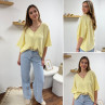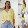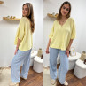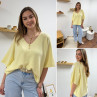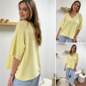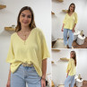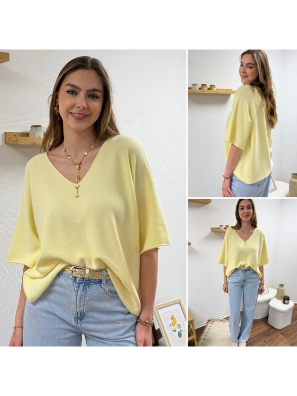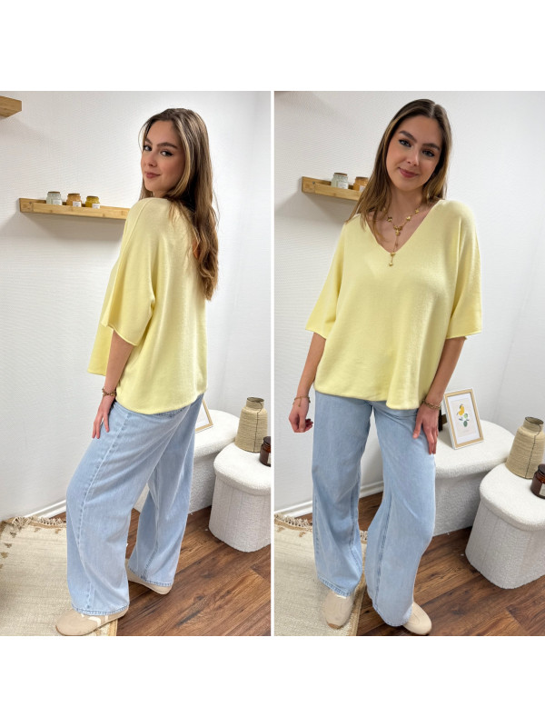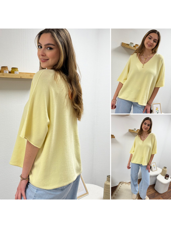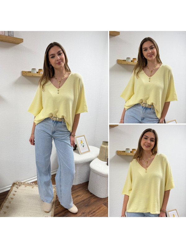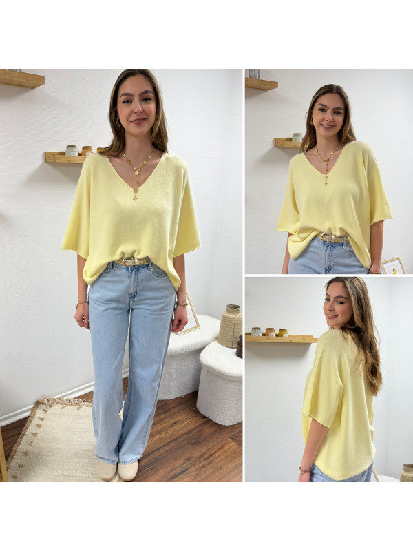 Pull col V oversize jaune pâle manches coude