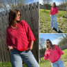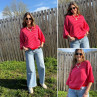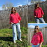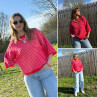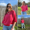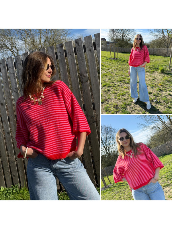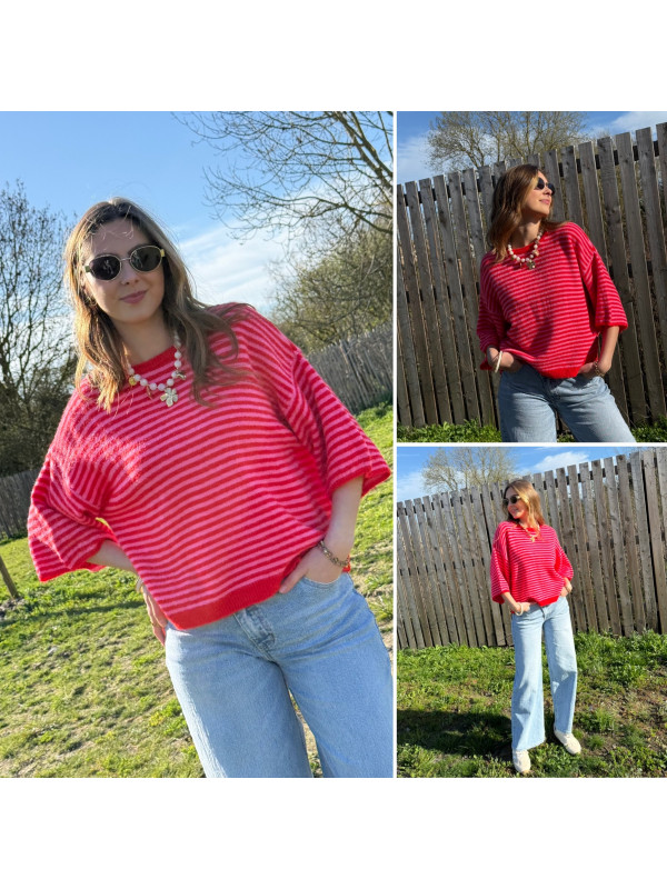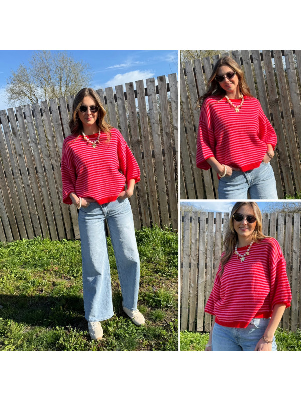 Pull manches courtes rayé rose et rouge