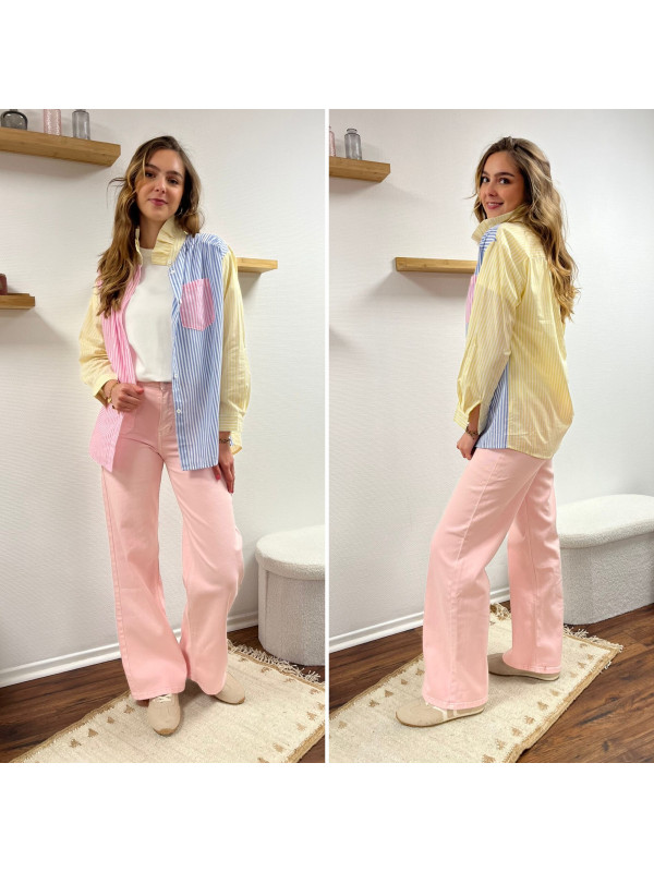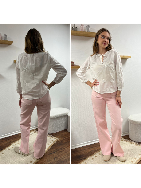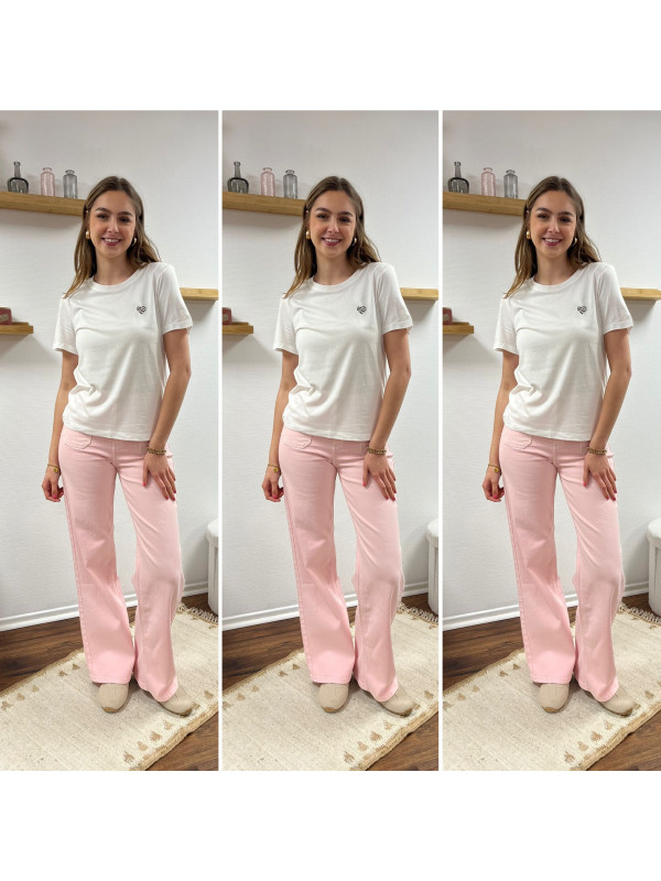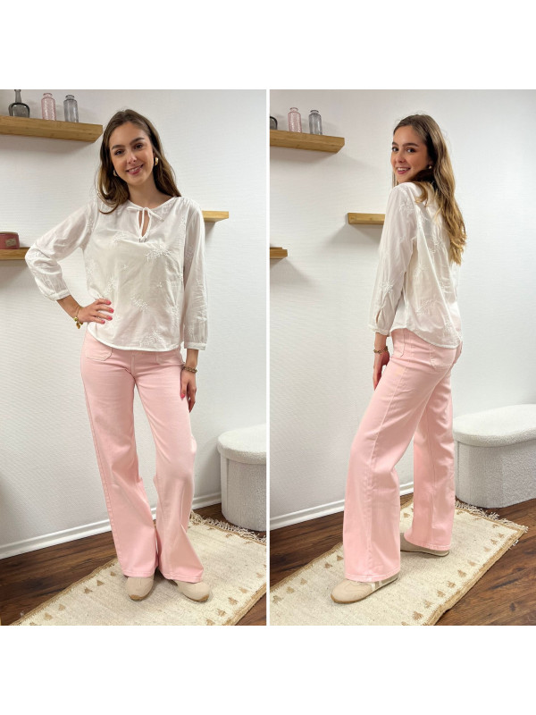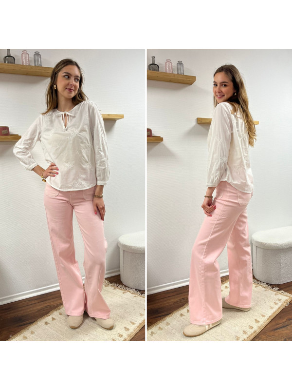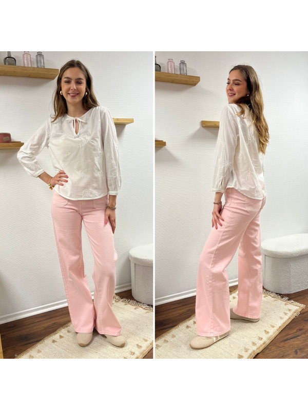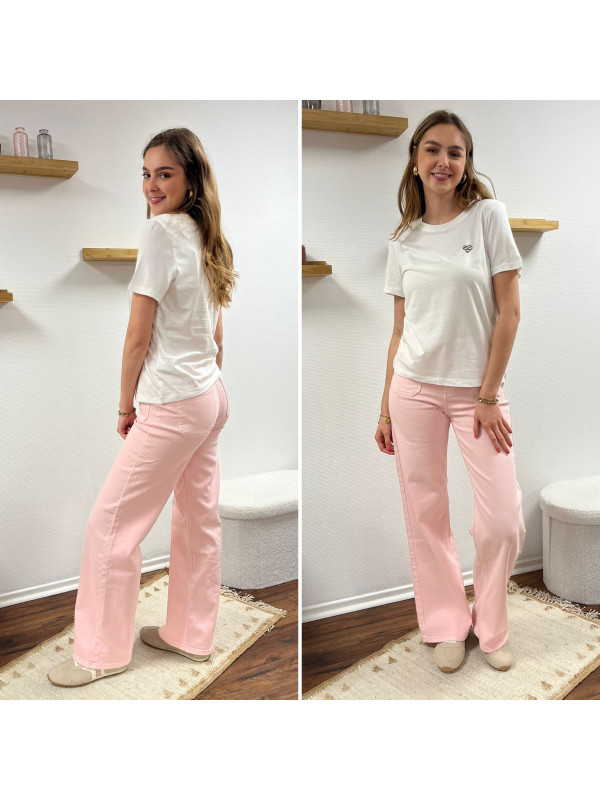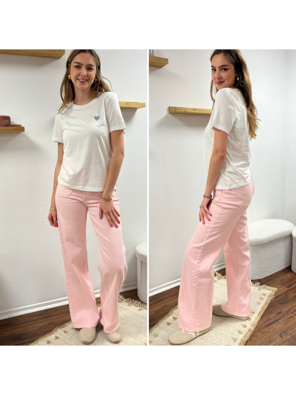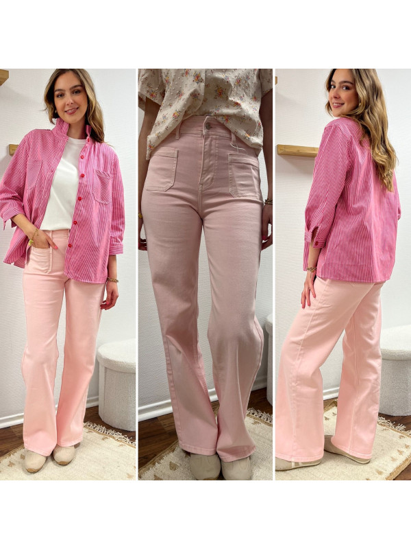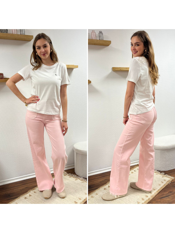 Jean rose pâle wide leg avec poches plaquées sur le devant