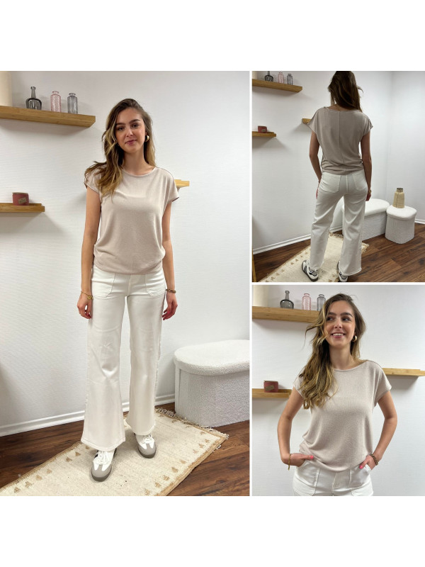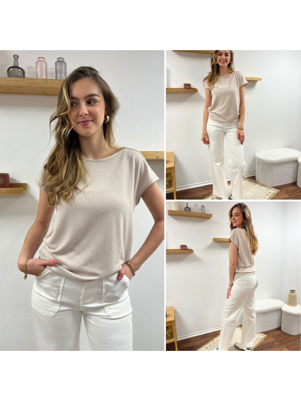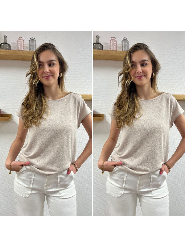 Tee-shirt sable en fines mailles bi matière dans le dos (du 36 au 46)