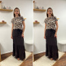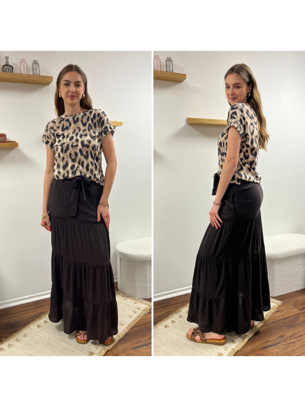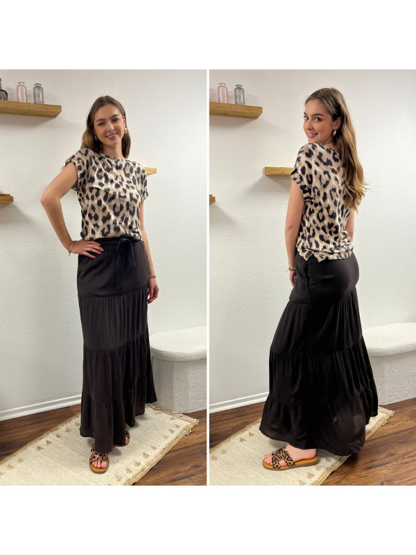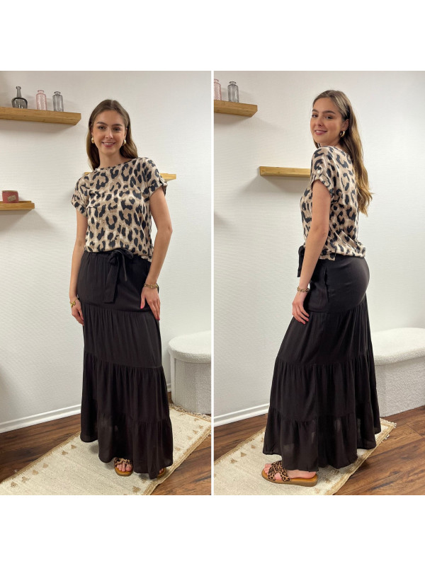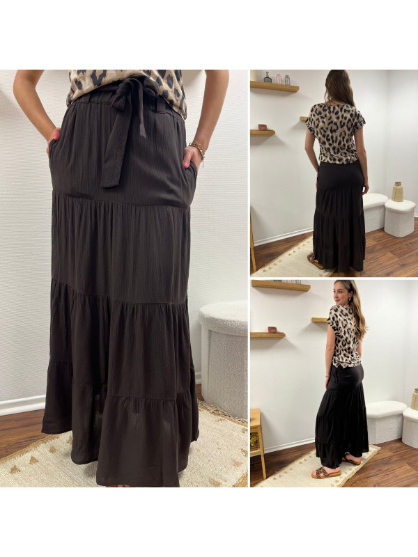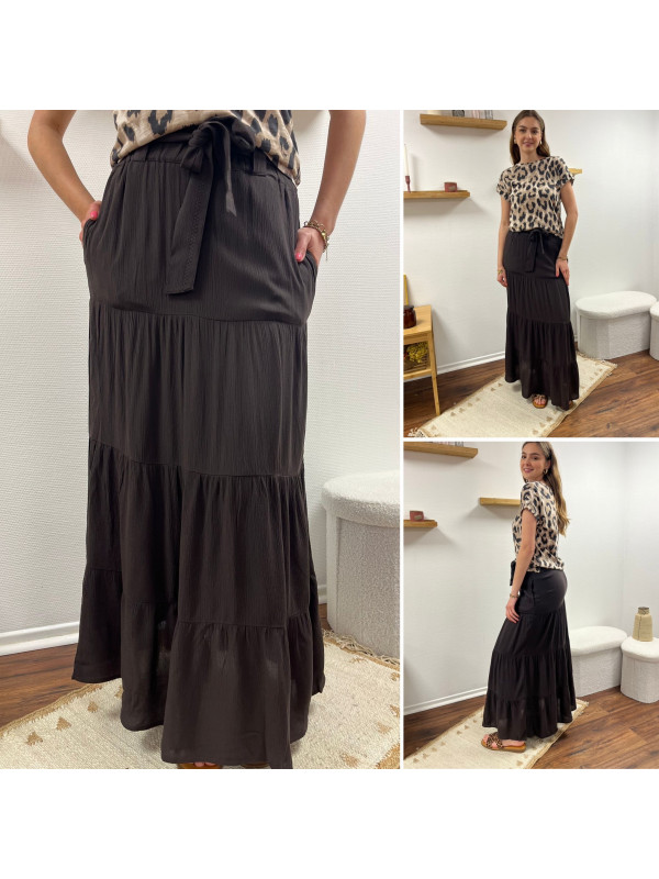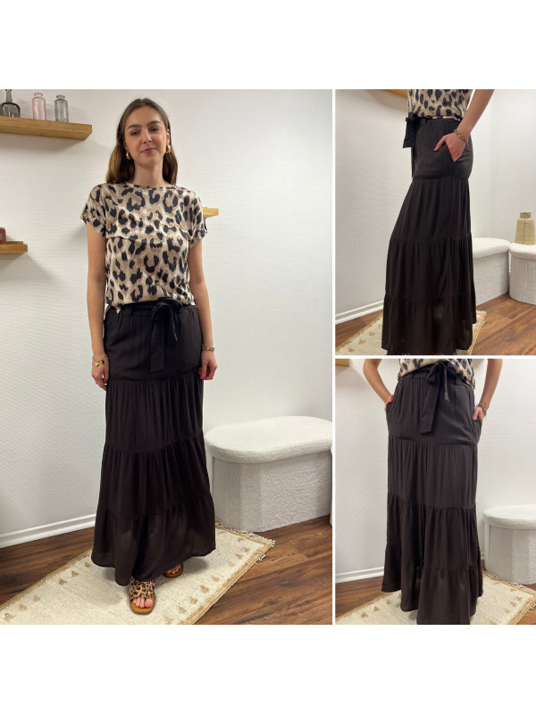 Jupe longue couleur chocolat élastiquée à la taille (du 36 au 46)