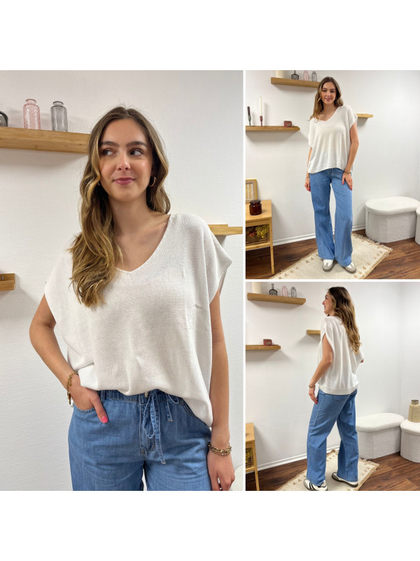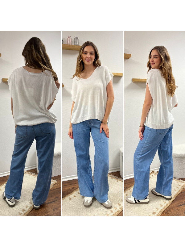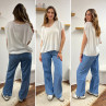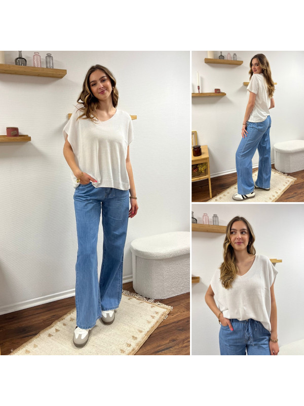 Jean léger en lyocell wide leg avec cordon à la taille...