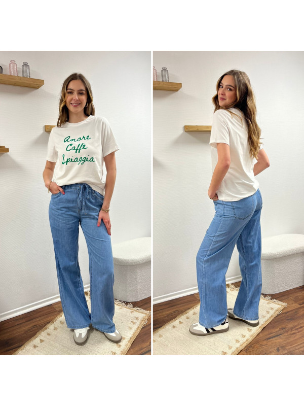 Jean léger en lyocell wide leg avec cordon à la taille...