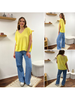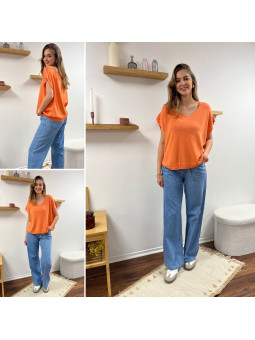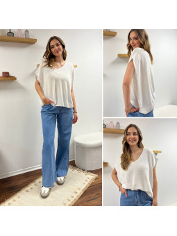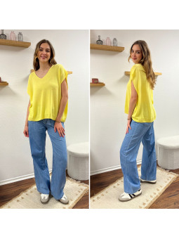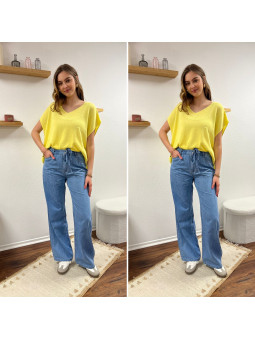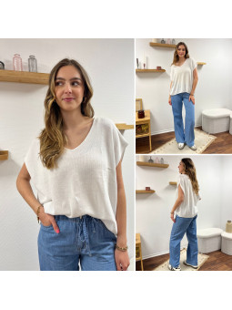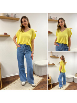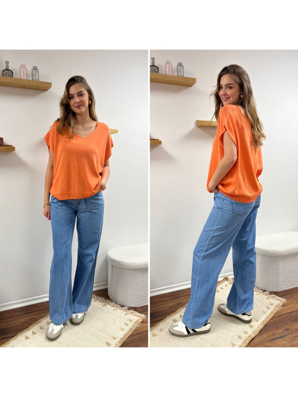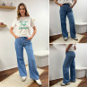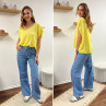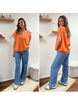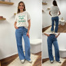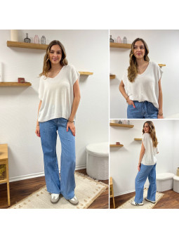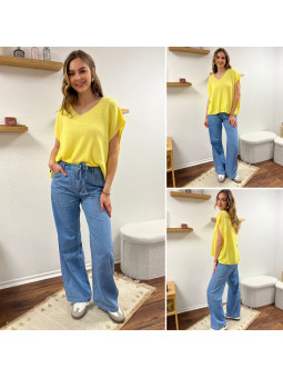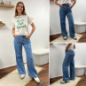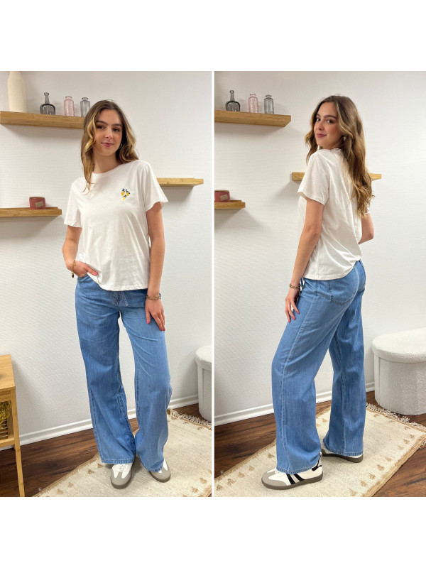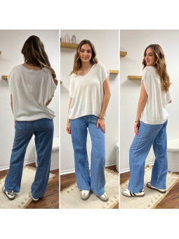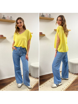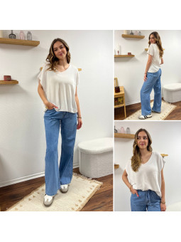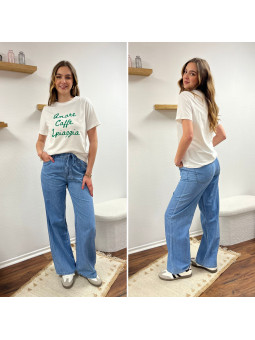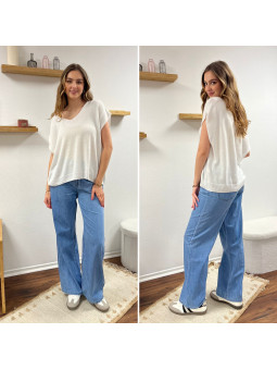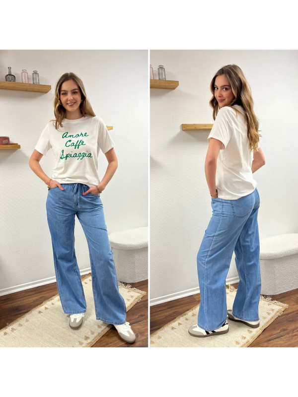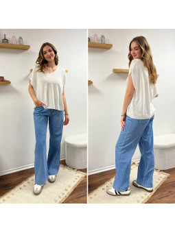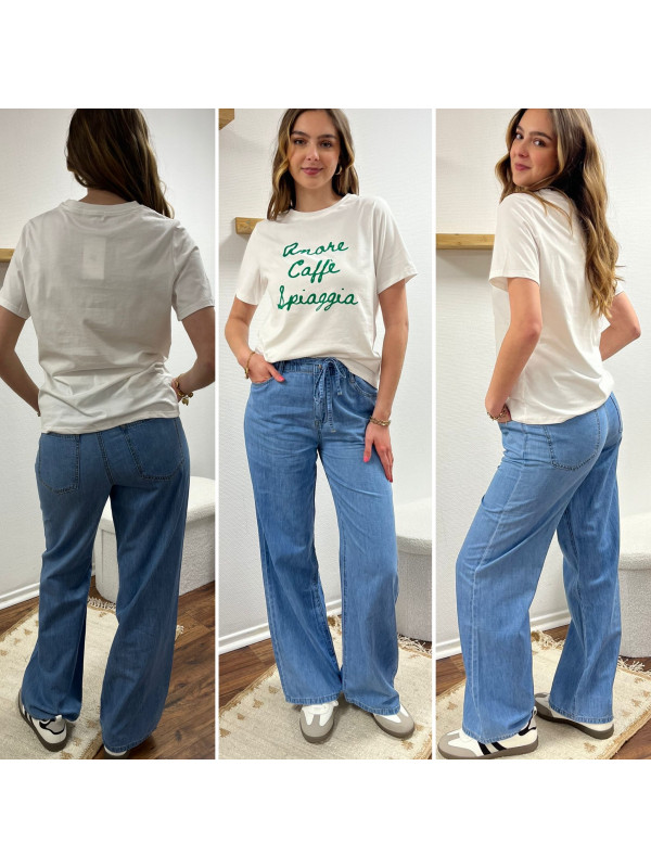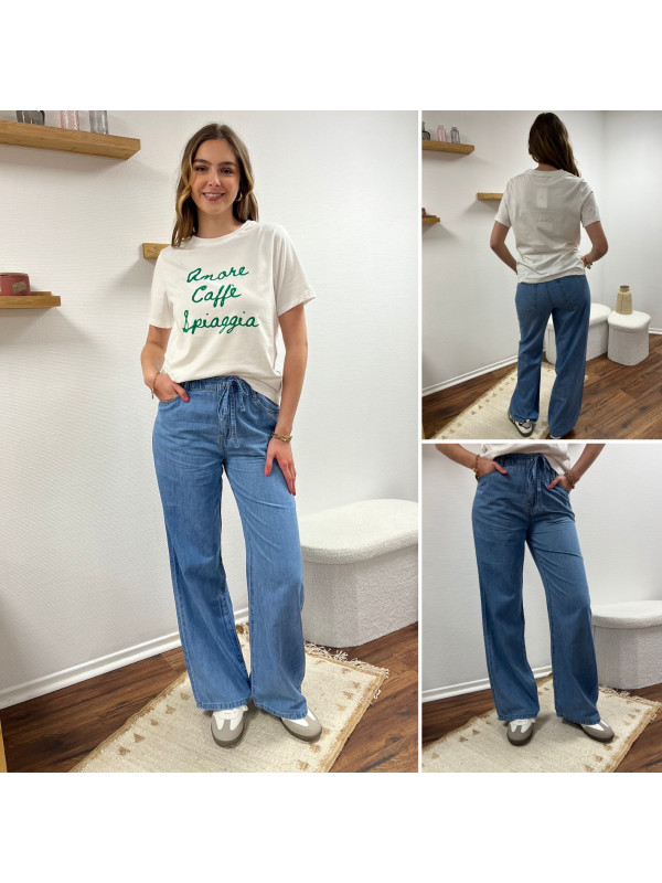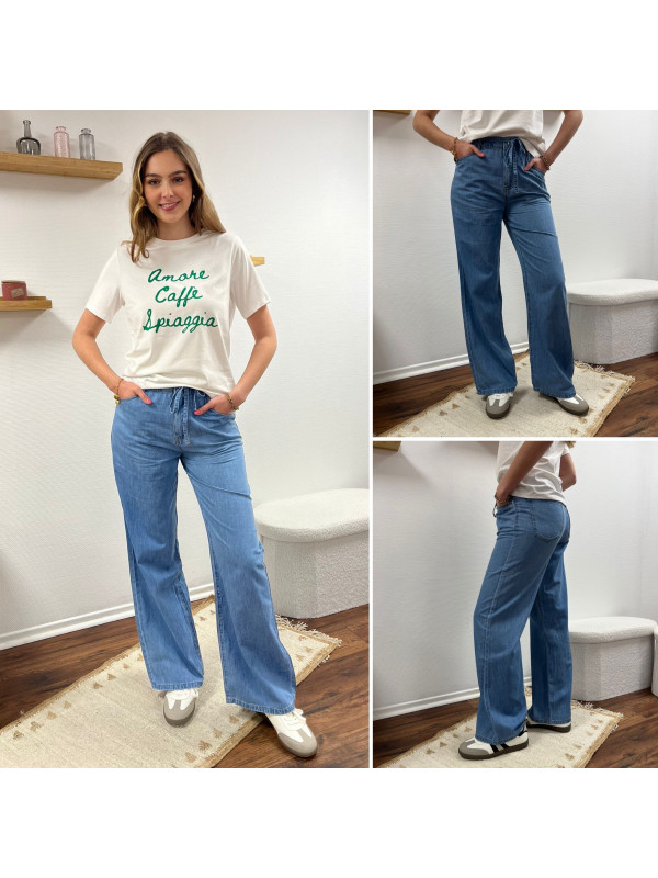 Jean léger en lyocell wide leg avec cordon à la taille
