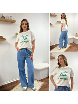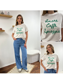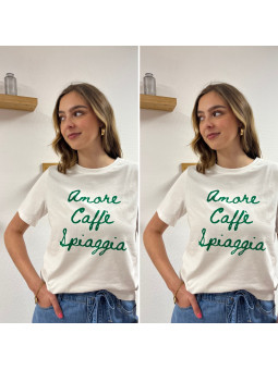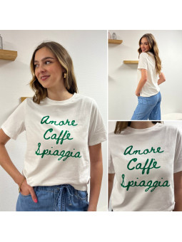 Tee shirt blanc manches courtes écritures vertes "amore caffe...