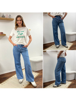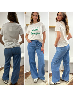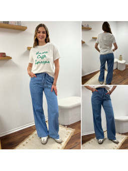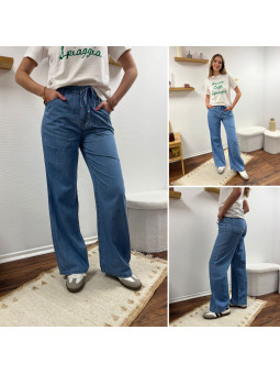 Jean léger en lyocell wide leg avec cordon à la taille...