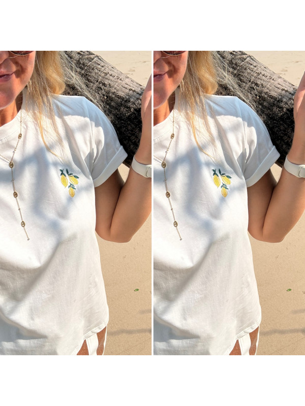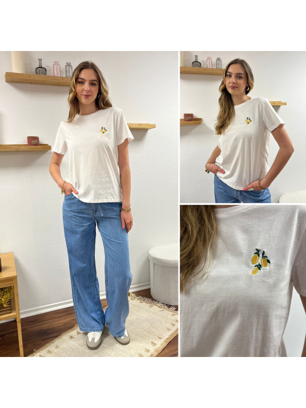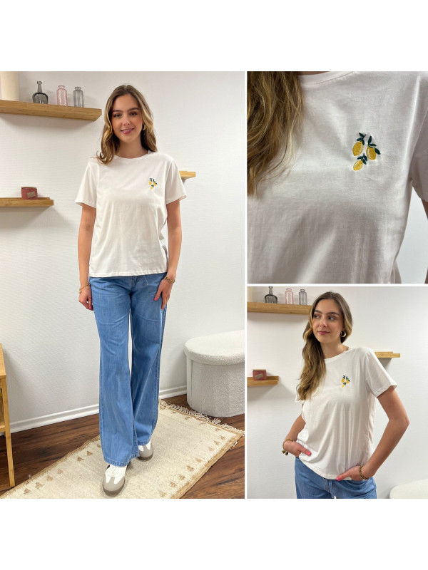 Tee-shirt blanc avec petit dessin de citrons