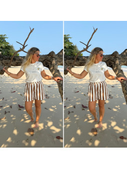 Le modèle mesure 1,70m et porte une taille SM.