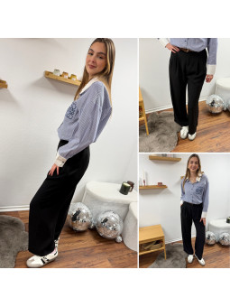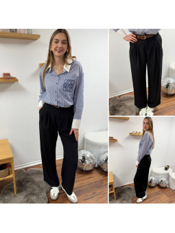 Pantalon fluide noir avec ceinture en similicuir marron Le XS...
