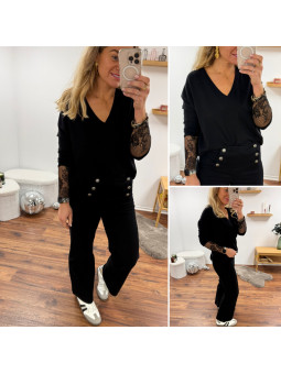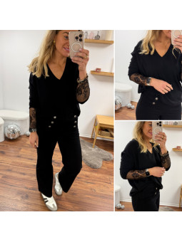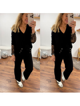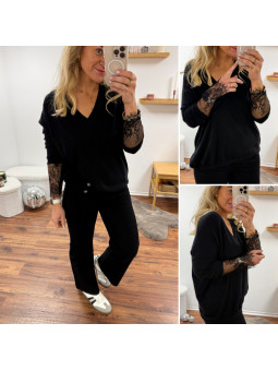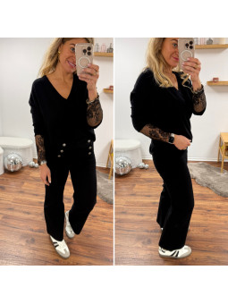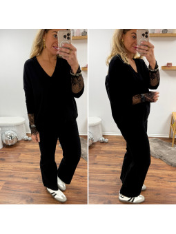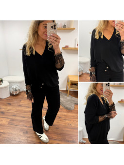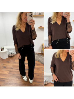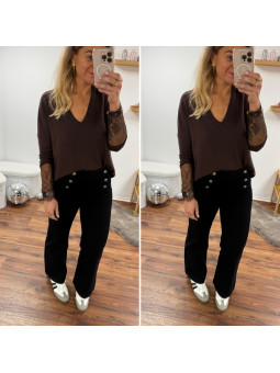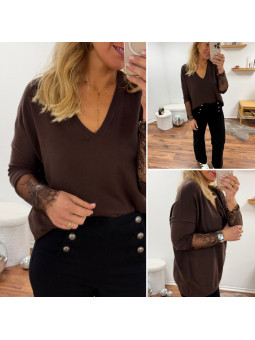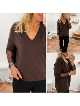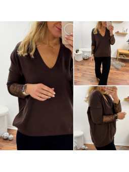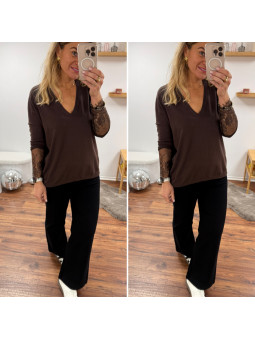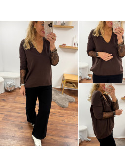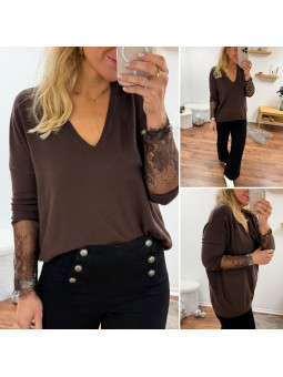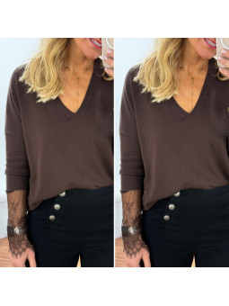 Pull col V chocolat avec dentelle aux manches Cet article en...