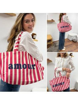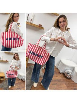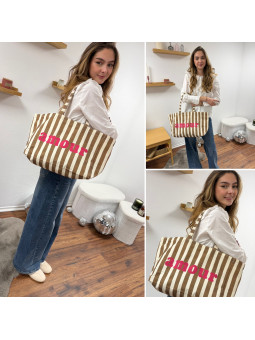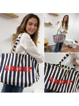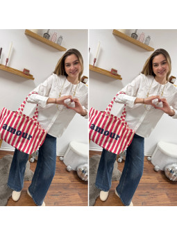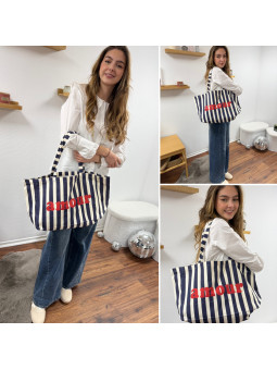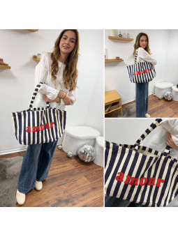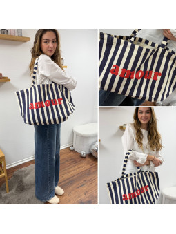 Tote bag en tissu épais à rayures blanches et bleu marine et...