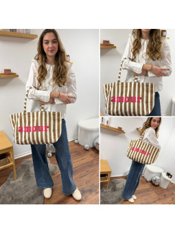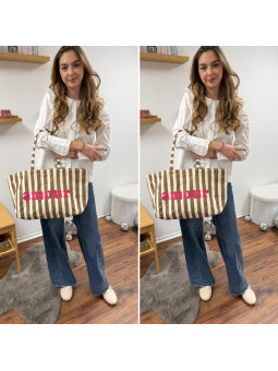 Tote bag en tissu épais à rayures blanches et vert olive et...