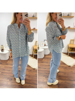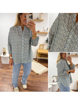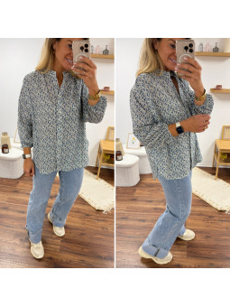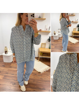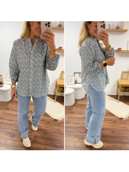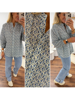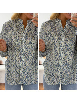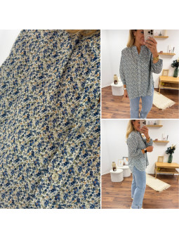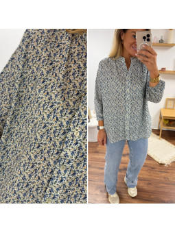 Chemise mi longue à petites fleurs bleues façon liberty avec...